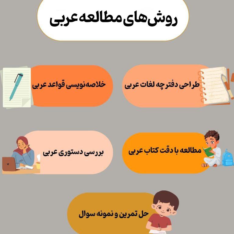 برای اینکه در درس عربی هفتم به بهترین نتیجه برسین و نمرهتون عالی بشه، لازمه با نکات کلیدی و بهترین روش مطالعه عربی هفتم آشنا باشین. وقتی بدونین چطور باید این درس رو بخونین، هم یادگیریتون سریعتر میشه و هم موقع امتحان با اطمینان بیشتری به سوالات پاسخ میدین.