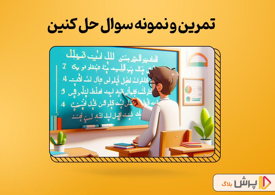 یکی دیگه از تکنیکهای خوندن عربی، تمرین و حل نمونه سواله. برای اینکه متوجه بشین میزان یادگیری شما از هر درس چقدر بوده، باید به سراغ حل کردن تمرینات عربی برین. تمرین حل کردن، یکی از بهترین روشهای خوندن عربی برای امتحانه.